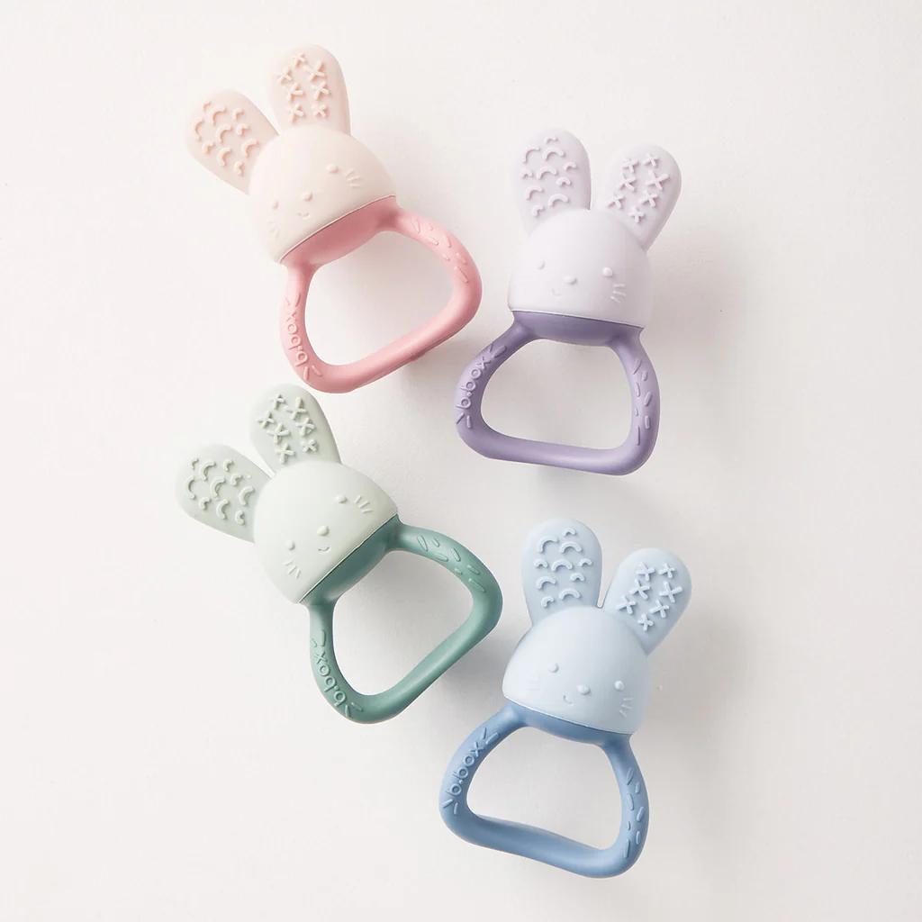 Introducing the b.box chill + fill sensory teether. Offering a unique refillable teether to provide refreshing relief to teething tots from 3 months. Keep the teether chilled in the fridge, then simply add an ice cube and cold water for cooling relief to inflamed, achy baby gums. Soft, food grade silicone bunny head and ears reach all areas of mouth safely. Silicone is textured for varied sensations, providing massaging relief as teething baby chews and explores. Parents are in control of what fills the teether, no more toxic gels and other nasties. Solid base handle is easy for little hands to grasp from any direction and allows the teether to stay upright when placed on a flat surface keeping it clean and hygienic.