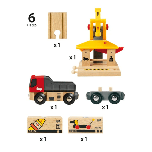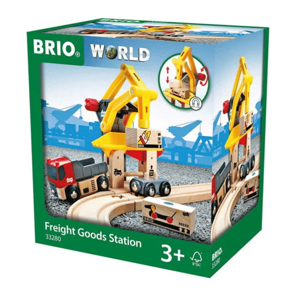 It’s time to get the cargo off the trains and onto the road! The interactive Freight Goods Station adds fascinating lift and load action to any BRIO World train set or layout.