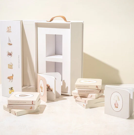 Jump-start baby’s exposure to first words using this beautifully designed board book box set—the perfect gift for newborns and baby showers! Now in a mini size that’s great for their small hands!