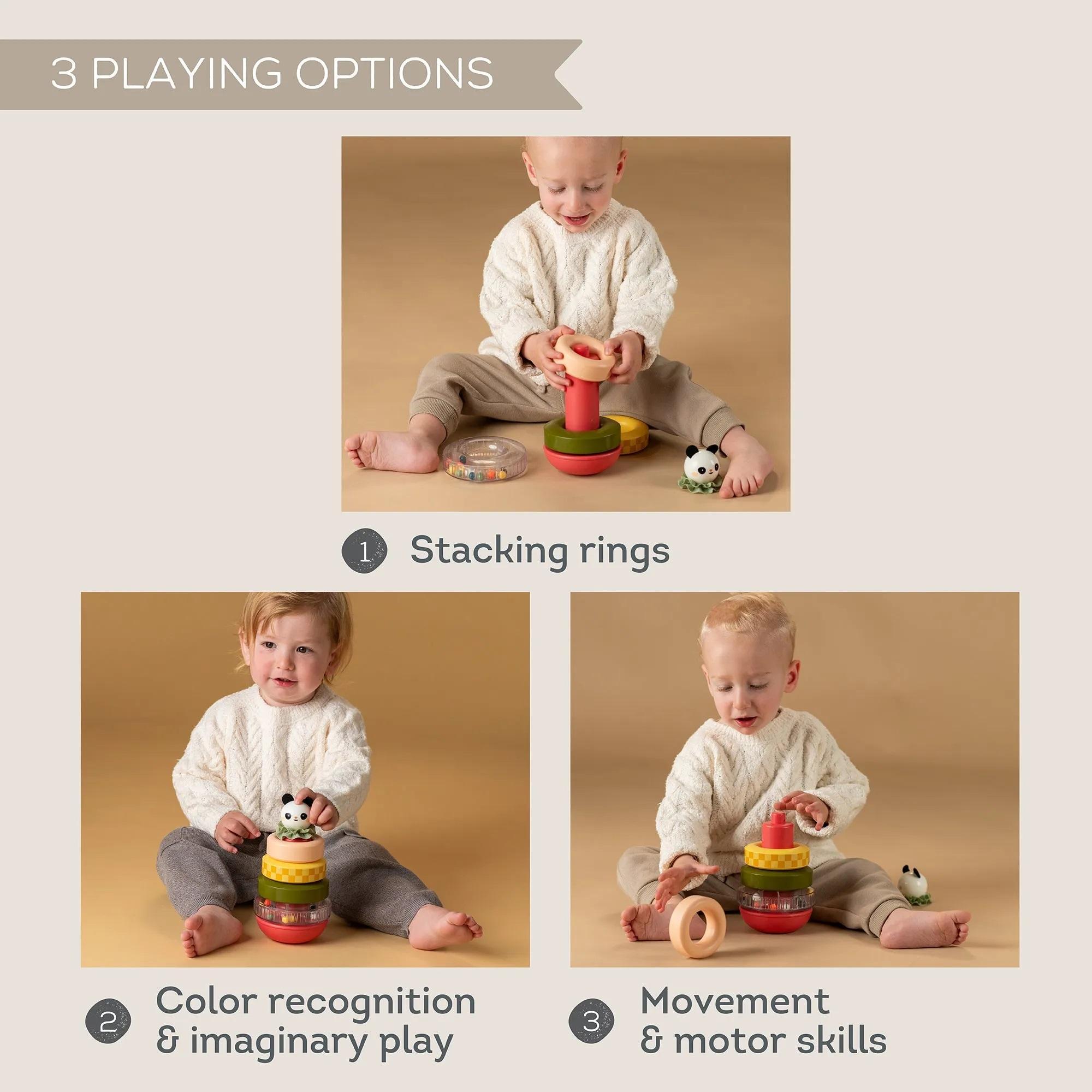 - Topped with a charming panda head, the stacker is not only functional but also visually appealing, making it a delightful addition to any playtime routine.